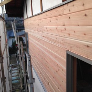 昨日今日と暖かい日に、運よく外壁工事です。 今回は、得意の杉板張りです。モルタルやサイディングとは、いい雰囲気に仕上がりました。足場での作業は、足にくるな。iPhoneから送信
